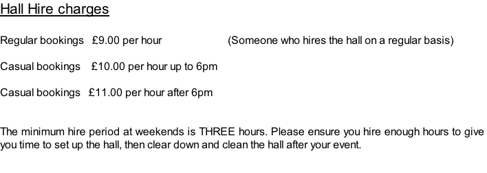 Before completing the Hire Agreement, please check the hall bookings calendar to ensure your required date and time is available, by CLICKING HERE
